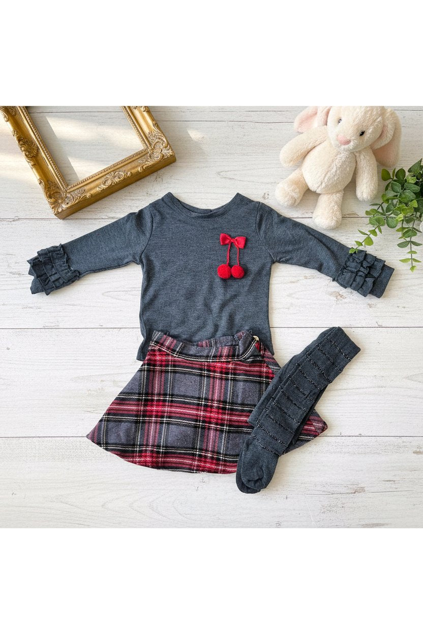 Cet ensemble fille en tartan rouge et gris allie douceur, élégance et style pour toutes les petites fashionistas.