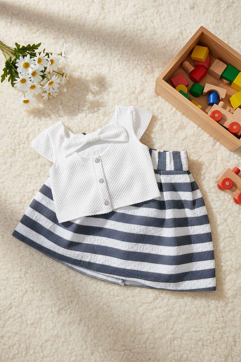 Cet ensemble fille style marin associe élégance et confort pour un look plein de charme et de légèreté.